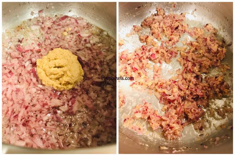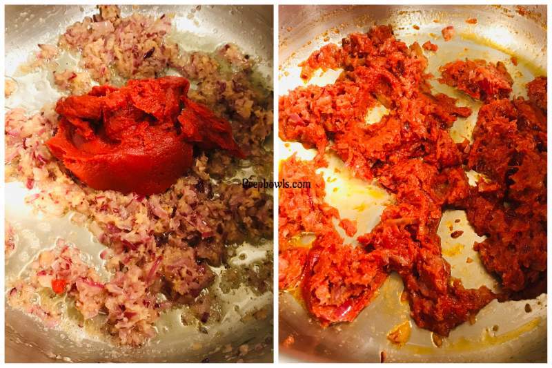 Then add thick tomato paste and sauté for 30 seconds ( make sure to set in LOW power to prevent tomato paste from getting burnt).